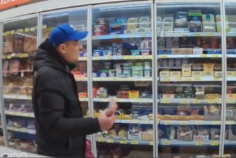 Мужчина украл много колбасы и сыра.