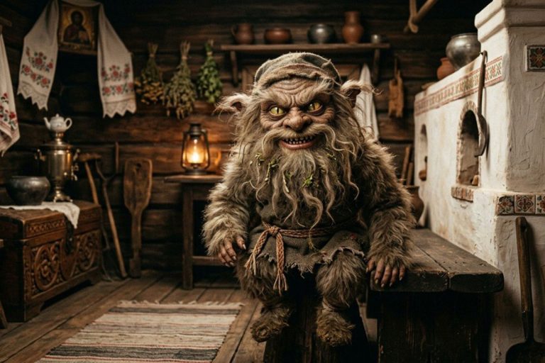 Домового в старину представляли маленьким злобным персонажем, покрытым седой шерстью. Он, согласно поверьям, мог перевоплощаться в кошку.