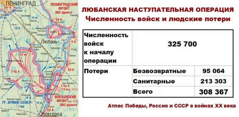 Завершилась Любанская операция. Войскам левого крыла фронта и Волховской опергруппы (до 23 апреля 1942 года – Волховский фронт) не удалось разгромить группировку 18-й немецкой армии в районе Любань, Чудово, Финёв Луг и прорвать блокаду Ленинграда (Санкт-Петербург). Тем не менее, советские войска оттянули на себя главные силы группы армий «Север», облегчив проведение Демянской наступательной операции и наступления на Западном стратегическом направлении.