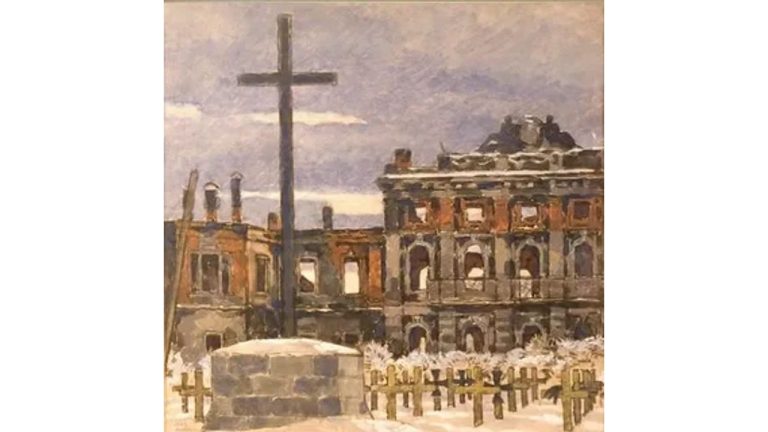 5 марта 1943 года. В этот день в Калинин приехал известный живописец, профессор Ленинградской академии художеств Михаил Бобышев. Он родился в Осташковском районе Тверской области. В Калинине начал работать над серией картин, изображающих разоренный фашистами город. Так родилась серия гуашей на тему «Освобождение г. Калинина». В 1948 в Калинине прошла выставка его работ. В настоящее время в Тверской областной картинной галерее находится свыше 20 работ Михаила Бобышева, в том числе «Путевой дворец XVIII в. в г. Калинине, разрушенный немецко-фашистской армией в 1941 г. » , «Мост через Волгу в г. Калинине, взорванный немецко-фашистской армией в 1941 г. » , «Части Красной Армии на Советской площади».