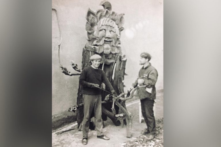 Николай Дочкин и Всеволод Солодов ваяют Бога Солнца Ярило. Фото: dochkin.ru.