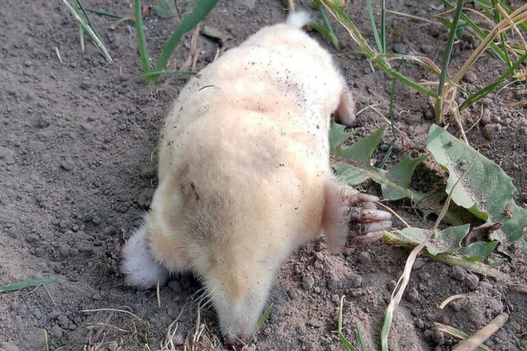 Крот лейцист-флавист, у которого отсутствует пигментация, как у обычных особей.