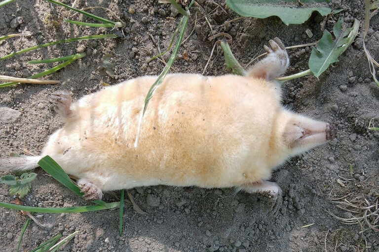 Крот лейцист-флавист, у которого отсутствует пигментация, как у обычных особей.