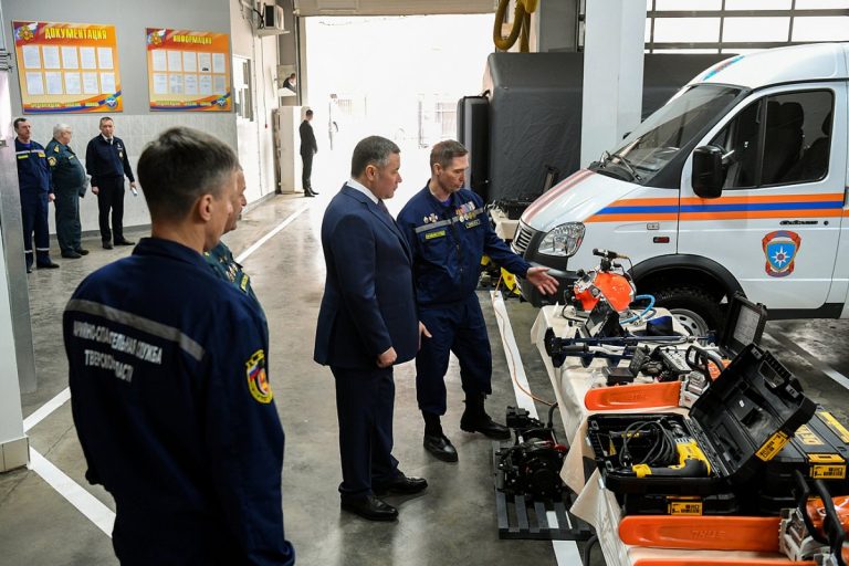 Игорь Руденя передал для подразделений аварийно-спасательной службы Тверской области новый автомобиль «ГАЗ Соболь», оборудованный всем необходимым, и модуль-палатку быстрого развёртывания, который служит пунктом обогрева водолазов.