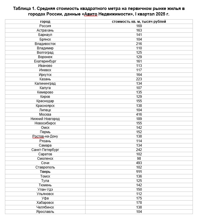 По сравнению с IV кварталом 2024 года в Твери интерес к квартирам в новостройках за квартал увеличился на 16%, а стоимость квадратного метра составила 111 тыс. рублей. Отдельно спрос вырос в сегменте однокомнатных (+39%), двухкомнатных (+33%) и студий (+15%).