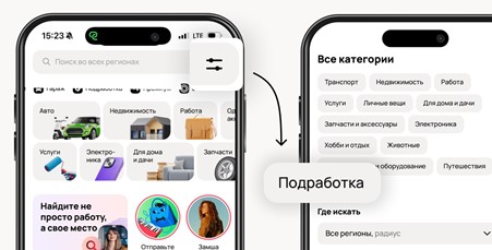 — Перейти в категорию «Подработка» из мини-меню на главной странице Авито.
