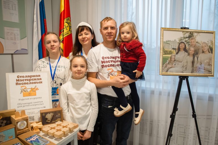 Семья Поспеловых с тремя детьми живёт в Калининском округе. Она занимается собственной столярной мастерской.