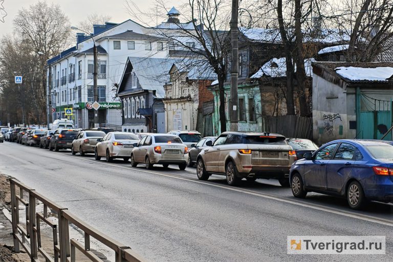 Центр Твери встал в километровой пробке