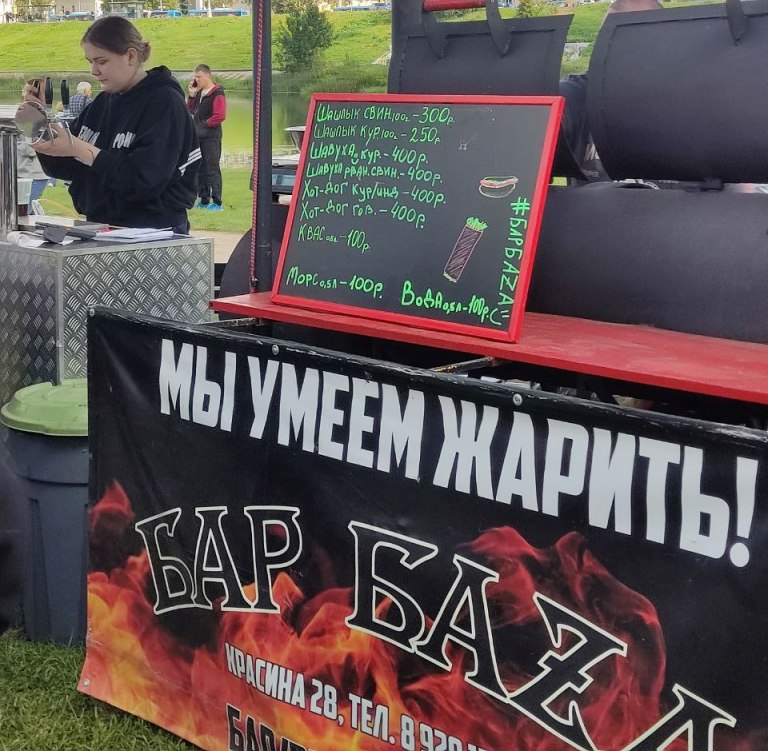 Достаточно высоки цены на мясные изделия: за 100 граммов шашлыка из свинины придется отдать от 300 рублей, из курицы – 250 рублей. Хот-доги — от 300 до 400 рублей, пирожки (с вишней или с картошкой) — от 100 рублей, сосиска в тесте — 120 рублей, сэндвичи — от 270 до 550 рублей.