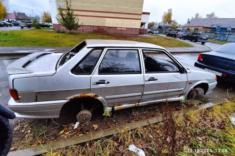 Речь идёт об автомобиле ВАЗ 2115, оставленном рядом с домом № 4 к. 1 по улице 8-я Красной Слободы. Транспортное средство находится в разукомплектованном состоянии, отсутствуют стекла, имеется свободный доступ в салон.
