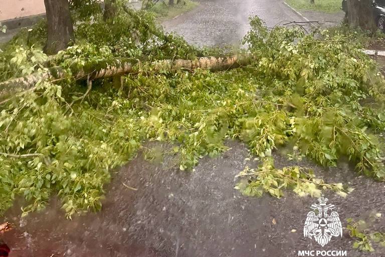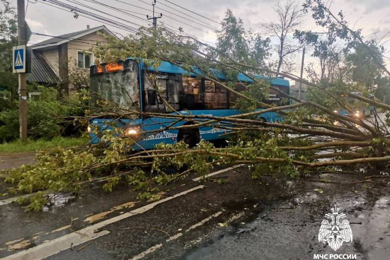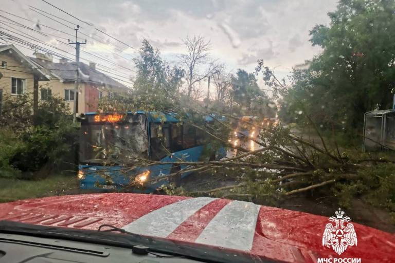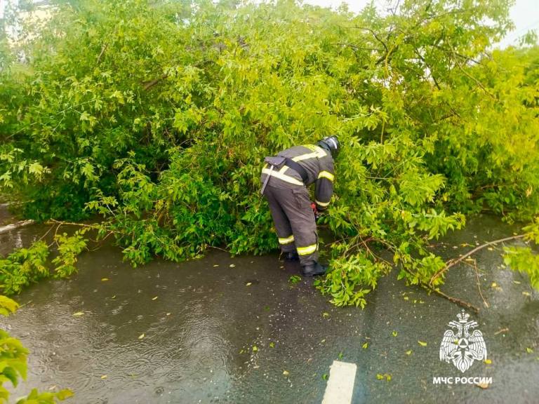 Непродолжительный, но весьма сильный ливень с градом и ураганным ветром добавил работы спасателям и головной боли автовладельцам. Сначала сотрудникам МЧС пришлось убирать поваленные деревья, одно из которых упало на автобус.