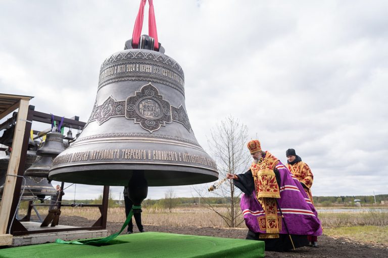 Митрополит Тверской и Кашинский Амвросий совершил освящение тринадцати колоколов для строящегося храма Всех святых в селе Новом — Архиерейского подворья в Конаковском округе. Как сообщили в Тверской епархии, самый большой колокол весит 7 тонн.