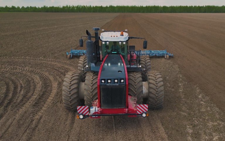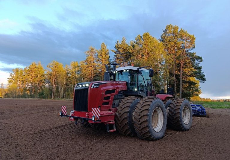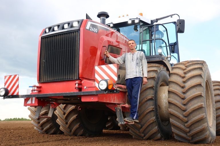 Машинисты колхоза «Мир» отмечают, что благодаря спаренным колёсам и огромным шинам трактор практически не проваливается, не трамбует почву, что важно для правильной почвообработки. Плюс машина мощная, скорость высокая: меньше, чем за смену обрабатывает порядка 100 гектаров.