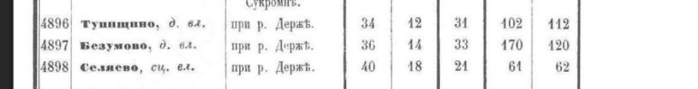 В данных за тот год говорится, что деревня расположена на расстоянии 48 километров от уездного города при колодце. То есть из источников водоснабжения там был только колодец. В ней насчитывалось 19 дворов, а проживали там 67 мужчин и 79 женщин. Ныне эта деревня — уже не самостоятельный населённый пункт, а является частью села Заклинье.