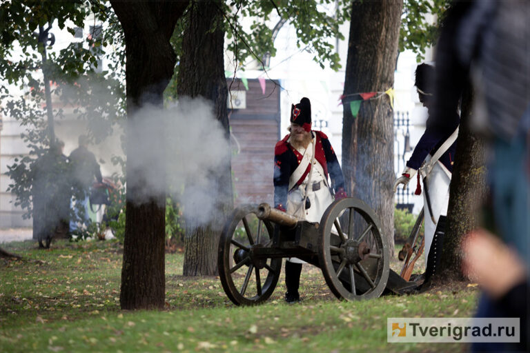 Реконструкция сражения с войсками Наполеона в городском саду Твери.