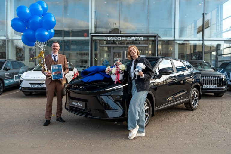 Знаковое событие произошло именно в дилерском центре Макон Авто: здесь нашел своего владельца 100 000-й автомобиль OMODA C5 в РФ.