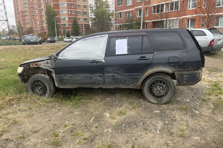 Второй автомобиль, о котором идёт речь — это брошенный владельцем Mitsubishi Cedia, который стоит на зелёной зоне в районе дома № 6 по улице Цветочной. Автомобиль разукомплектован: отсутствую задние фонари, некоторые кузовные детали. Да и сам кузов уже сгнивший.