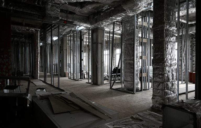 Сейчас на строительстве нового корпуса ДОКБ работают более 250 человек. Построен каркас здания, заканчивают кладку наружных стен, а также устройство кровли и монтаж окон. Продолжают устройство фасада и перегородок, стяжку пола, монтаж внутренних и наружных инженерных систем. Также устанавливают котельную.