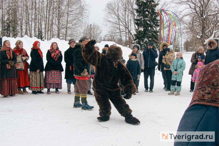 Заглянул в Домотканово и знаменитый медведь. Мы познакомились с ним ещё в прошлом году. В этот раз выступление немного изменили. Его попросили показать походку иностранного тёзки Майкла Джексона — и он с удовольствием повторил. Затем состоялась традиционная схватка, и теперь победа осталась за медведем. В прошлый раз он уступил. Приятно, что программа частично импровизированная и не повторяет прошлогоднюю.