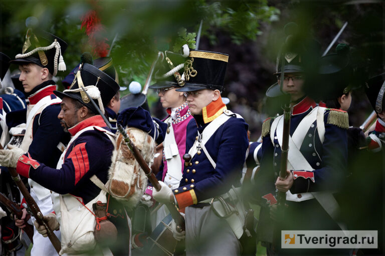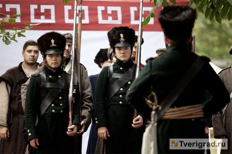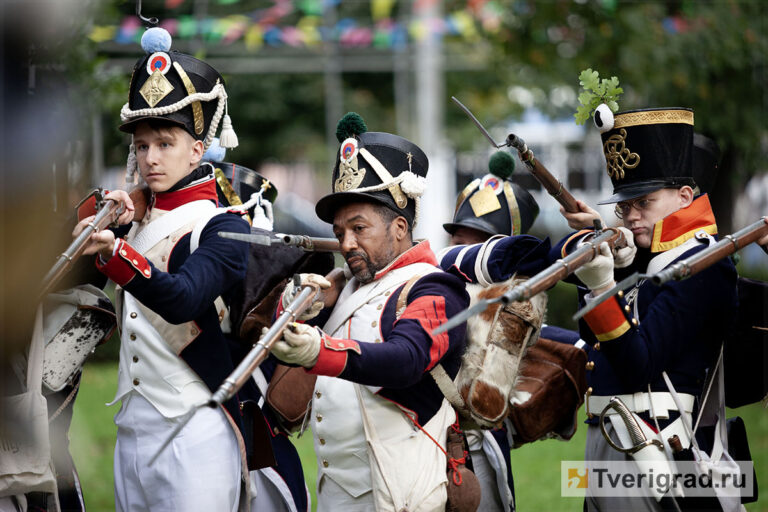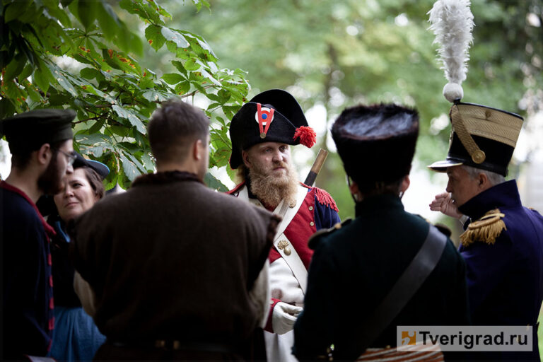 И теперь в Твери реконструкторы тоже воссоздают дух времени Отечественной войны 1812-го года.