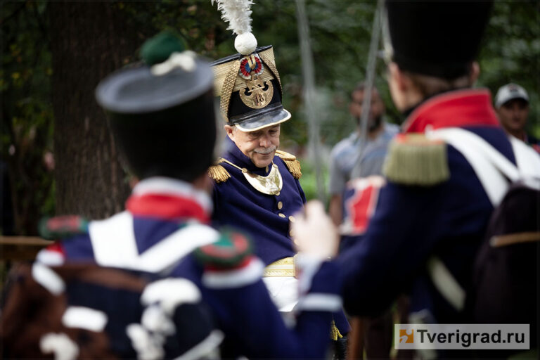— Мы представляем Ассоциацию групп военно-исторической реконструкции города Череповца. Она состоит из 18-го линейного полка, из 13-го лёгкого полка и Первого восточно-прусского полка, которые приехали сюда в Тверь в небольшом числе, в составе какой-то небольшой сводной роды. Клуб у нас ведёт свою историю с 1992-го года, участвуем во всех военно-исторических реконструкциях, которые проходят у нас в России. Только за этот год участвовали в 17 реконструкциях, в том числе таких, как Бородино, Вязьма, фестиваль «Времена эпохи», который проходит в Москве. А так за плечами моих солдат и компании на Аустерлицком поле, и Лакаруния в Испании, и Булонский лагерь во Франции. То есть клуб воспитан на старых военно-исторических поездках, — рассказал он корреспонденту Tverigrad.ru о реконструкторском движении Череповца.