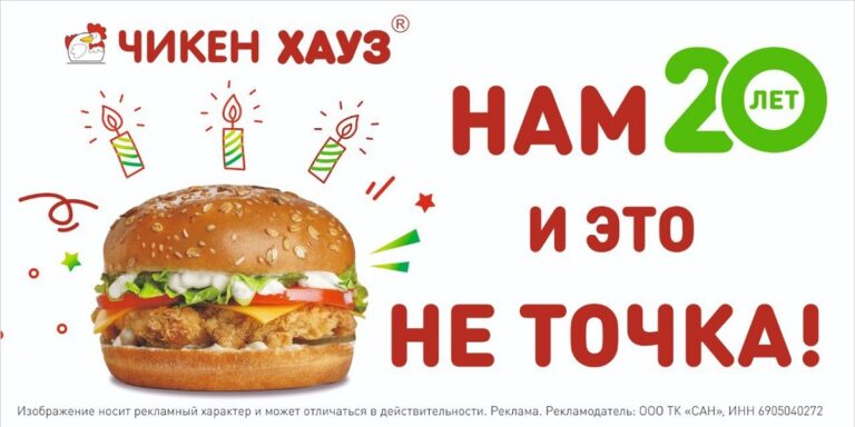 Быть гордостью России! Более чем за 20 лет ТМ «Чикен Хауз» выросла из городского ресторана быстрого обслуживания в федеральную франчайзинговую сеть, любимую не только жителями Твери, но и других российских городов.