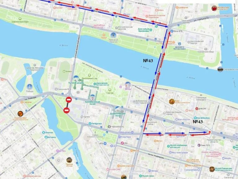Из-за перекрытия в центре Твери изменился маршрут автобуса № 43