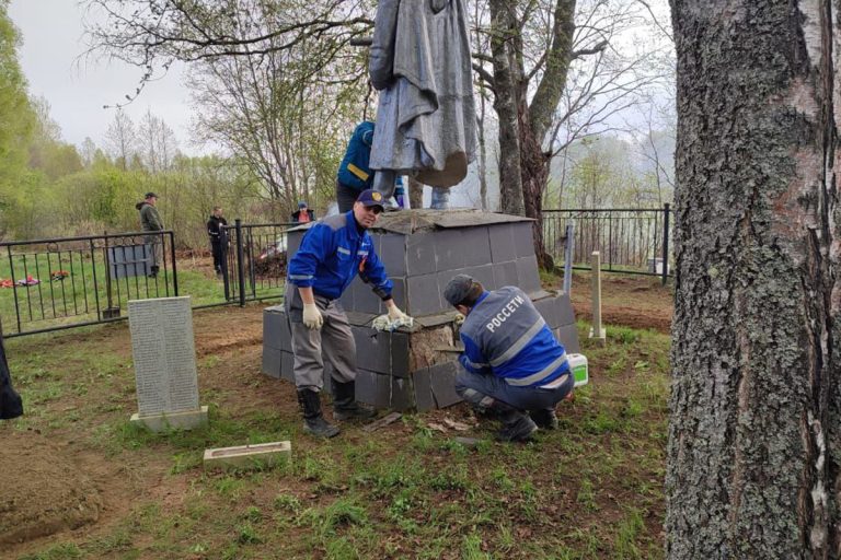 На данной территории практически полностью отсутствуют подъездные пути к установленному здесь памятнику, поэтому сотрудники «Тверьэнерго» задействовали специальную высокопроходимую технику, а также провели уборку на захоронении и покрасили ограждение.