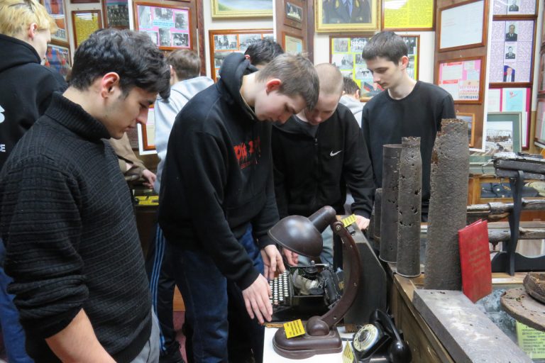 В комнате истории линейного отдела инспектор ОДН, капитан полиции Екатерина Романова показала студентам старинные предметы, относящиеся к истории транспортной полиции, а также форму стражей порядка, которая менялась со временем.