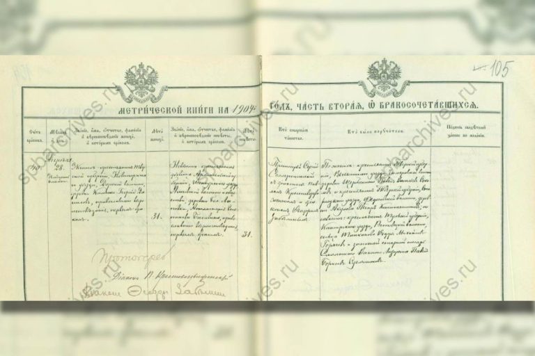 Апрель 1904-го в Санкт-Петербурге выдался солнечным. В Сергиевском соборе, что на углу Литейного проспекта, было много прихожан. Шла праздничная служба. Среди присутствующих особенно выделялась красивая молодая пара. Венчались Георгий Данилов из тверской деревни Каменка и Аполлинария Босавина из Архангельской губернии деревни Большая Липовка. Это событие положило начало новой семье, от которой «разрослось» семейное древо. Восстановила его через 116 лет их праправнучка из Твери Юлия Бочкарёва, которой удалось буквально чудом после многолетних поисков найти информацию о своих предках на сайте архива Санкт-Петербурга.