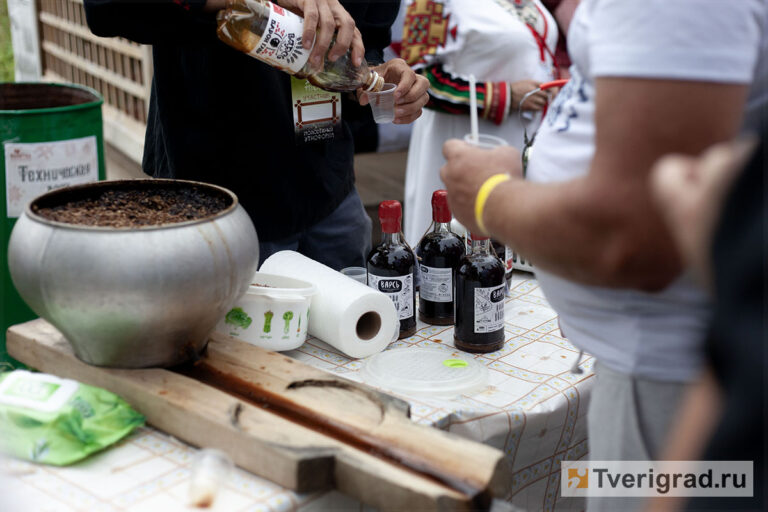 А рядом с мастер-классом по приготовлению калитки была ещё одна интересная локация – мастер-класс по приготовлению древнего удмуртского напитка, который носит варщ, или же варсь. Проводил его гость из Удмуртии Гаврил Кузьмин, известный также как Барон Гавр.