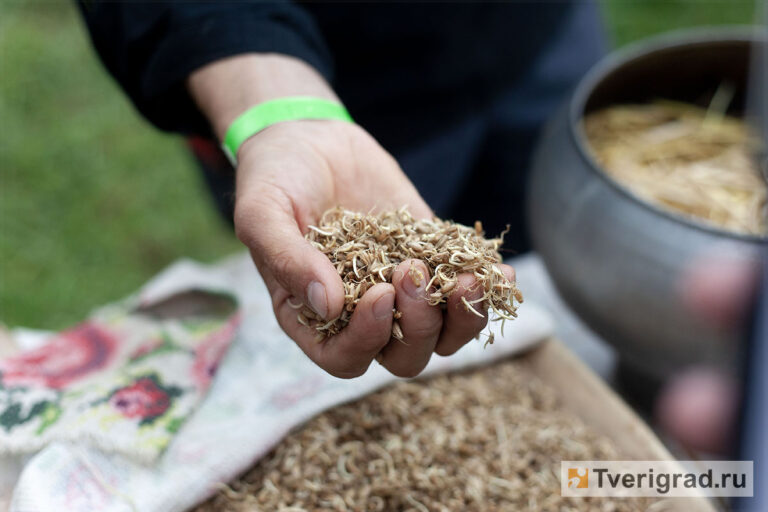 — Варщ готовится из пророщенной ржи. Сначала она замачивается в холодной воде на сутки. Далее вода сливается, и рожь проращивается в течение трёх дней. Дальше эта рожь сушится в протопленной печи, пропускается через мельницу. Получается ржаной солод, дальше он заваривается кипятком. Попутно топим удмуртскую печь два-три часа. И готовим чугунок для приготовления варща, — повествует гость из Удмуртии.