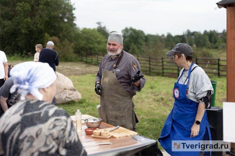 Ещё один традиционный карельский суп можно было попробовать в зоне сытных рядов, где работали различные точки общепита. В первую очередь — местные, из тверской Карелии. И Екатерина Земнова приготовила щи из капустного крошева – натти. Или так называемые карельские щи. Читатели Tverigrad.ru уже знакомы с таким блюдом из интервью с Анастасией Гулеевой, героиней проекта «TVERTEAM.История успеха» и хранительницы карельского гончарного искусства. Несмотря на очень простой рецепт, угощение получается отменное.