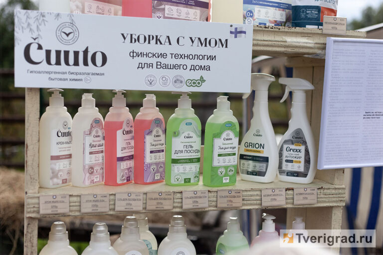 Основной ассортимент ярмарки был представлен мёдом, фермерскими сырами и мясными продуктами. Но ещё здесь можно было приобрести даже бытовую химию, которую создали и производят на Лихославльской земле. Даже назвали бренд по-карельски – «Чутто», что переводится очень просто: «чудо».