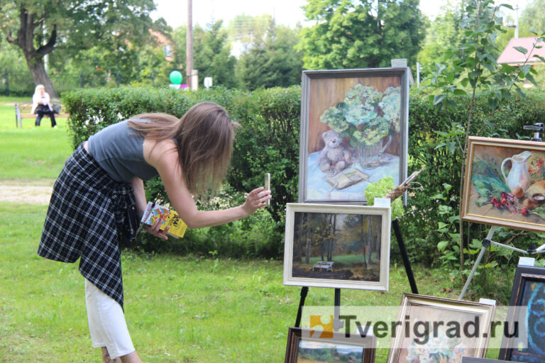 Дальше — ярмарка художественных произведений и декоративно-прикладного искусства. Именно здесь начинается первое торможение на тропинках фестиваля. У каждой из картин хочется задержаться хотя бы на минуту. Так считаю не только я. И взрослых, и маленьких гостей интересует искусство. Может быть, не каждый день, но здесь, на свежем воздухе с атмосферой праздника — обязательно.