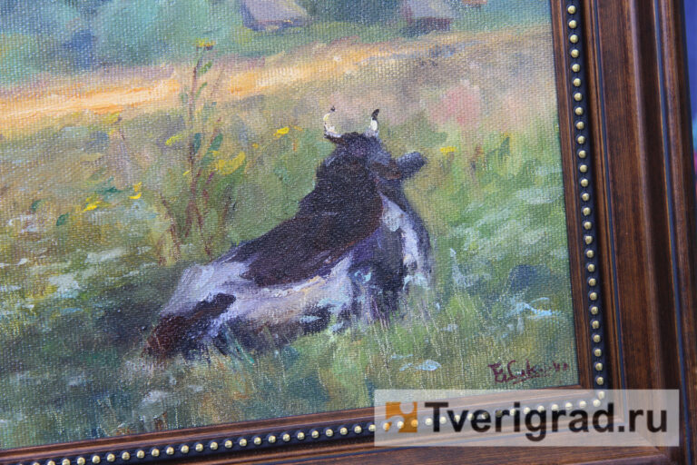 — Корова позировала мне минут десять, потом встала и пошла к палитре — стала есть краски, — смеётся Елена, — Это невозможно забыть. Мне нужно было успеть поймать свет — как он ложился по краю, где уходил в тень. Поэтому работала очень быстро. Я не помню, к сожалению, как звали корову, но она была очень вредной.