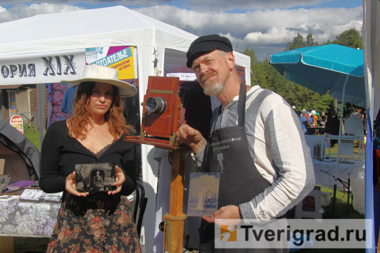 Сцена обрела завершённость, когда из-под накидок старинной фотоаппаратуры показался руководитель процессии — сотрудник проекта «Фотолаборатория XIX века». Нет, он не путешественник во времени, он прибыл из Твери вместе с напарницей, и как позже стало известно, вдохновительницей идеи Ириной Расиньоль.