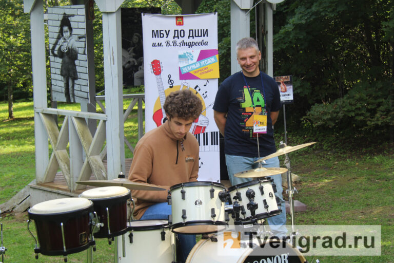 А кто хотел, мог сам попробовать себя на барабанных установках. Например, ДШИ имени В.В. Андреева устроила площадку для больших и маленьких, кто тянется к музыке: барабаны, трещотки, маракасы — выбирай, что душа пожелает.