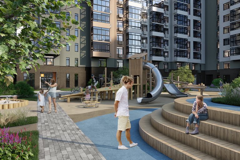 Одной из основных особенностей ЖК является камерный двор без машин с благоустроенной территорией, детскими игровыми и спортивными площадками. Двор без машин – это залог безопасности, особенно для детей. ЖК «ЭТОТ» позволит подарить им возможность расти, развиваться и находить друзей в безопасных пространствах и на уютных детских площадках. Камерный двор нового жилого комплекса – это более двух тысяч квадратных метров площади для игр детей, спорта и отдыха.