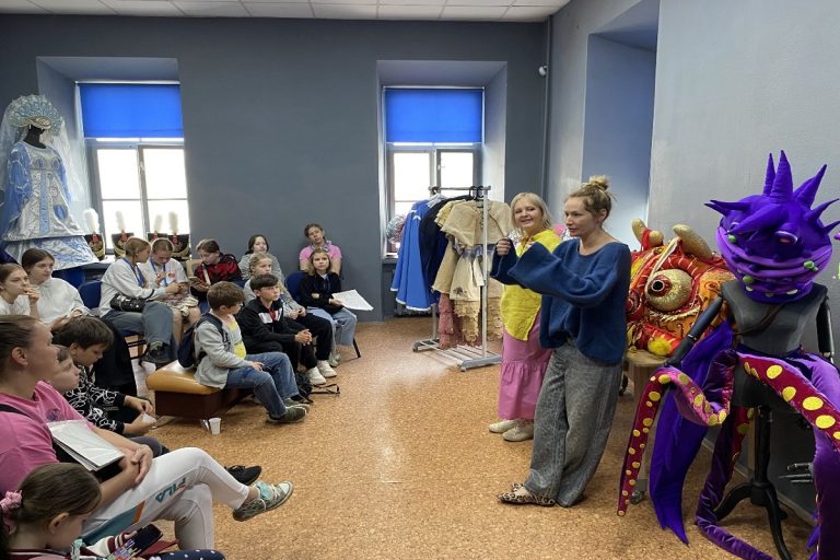 Вишенкой на торте стали экскурсии по закулисью и цехам, где дети рассматривали декорации и примеряли костюмы со спектаклей, а потом помогали бутафорам готовить для первой осенней премьеры ТЮЗа – спектакля Вероники Вигг «Обыкновенное чудо» (12+).