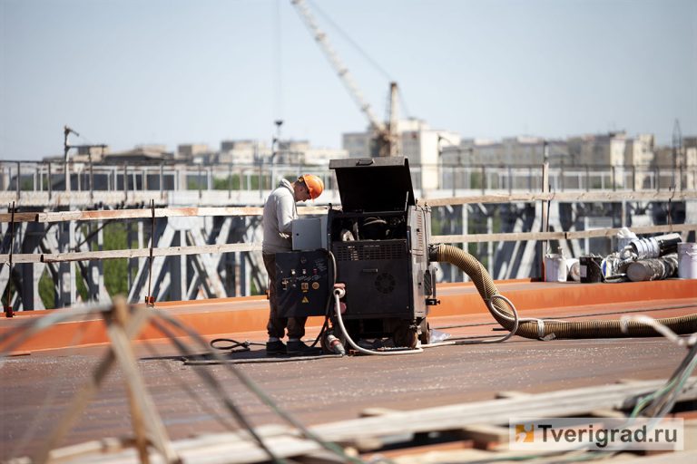 Металл, покрытый кварцем и полимером: на Западный мост в Твери наносят гидроизоляцию