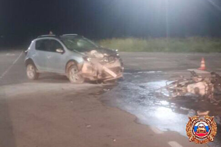 На 19 километре автодороги Починок — Удомля водитель автомобиля Renault Sandero при повороте налево не предоставил преимущество в движение встречному мопеду, в результате чего произошло столкновение. После столкновения мопед загорелся.