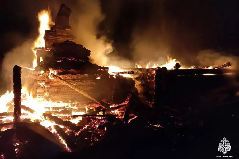 Огонь полностью уничтожил строение. В ходе тушения пожара было обнаружено тело погибшего.