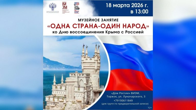18 марта Тверская область вместе со всей страной отметит 12-ю годовщину воссоединения Крыма с Российской Федерацией. Во всех муниципалитетах Тверской области организовано более 100 культурно-массовых мероприятий, посвящённых знаковой дате. Праздничные и познавательные события объединит Всероссийская акция «Из Крыма и Севастополя с любовью».