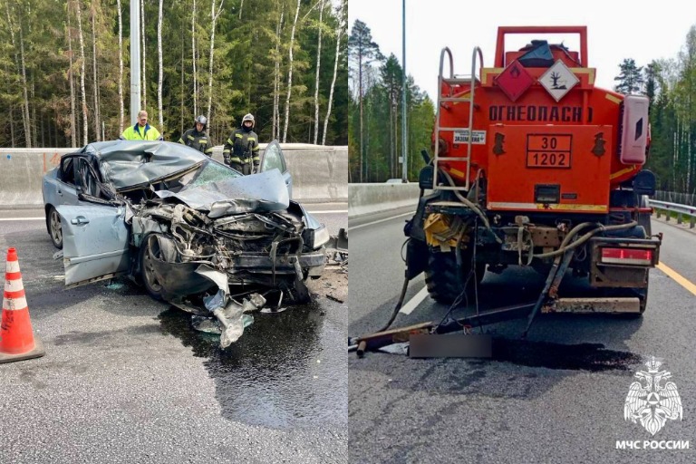 В региональной Госавтоинспекции уточнили, что на трассе столкнулись бензовоз и легковой автомобиль Volvo.