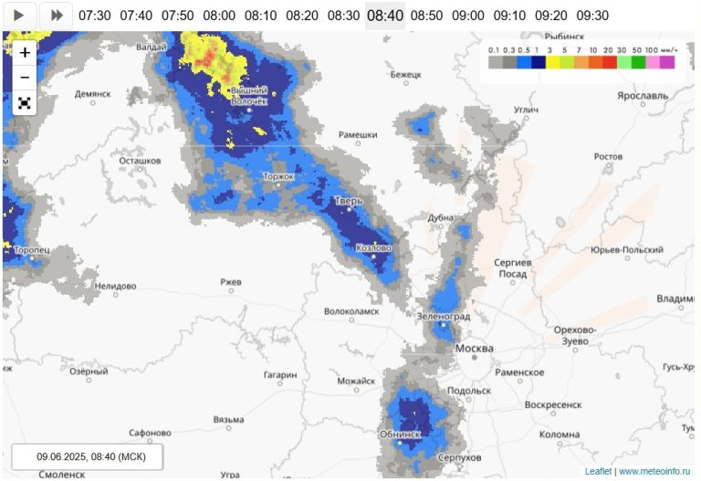 По данным Гидрометцентра России, дождь в Твери начнётся после 8:00 и продлится около получаса. Возможна гроза.