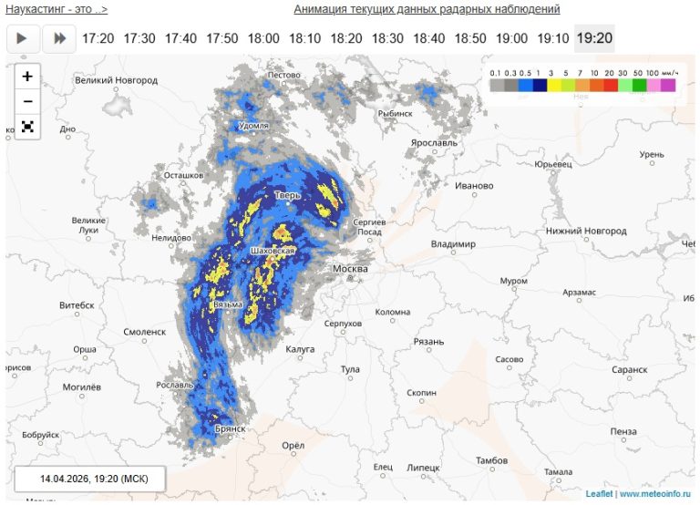 Осадки, в том числе, от умеренных до сильных, ожидаются и в Твери, где пик непогоды придётся ближе к 20:00.