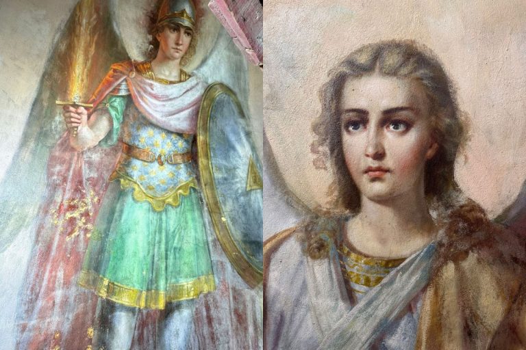— Конечно, вникаем. Изображения основываются на Священном Писании, и даже детали имеют значение. Рыба — это очень древний символ Спасителя ещё со времён первых христиан, когда шли гонения и появился условный язык символов. «Ихтис» — слово «рыба» — совпадало с сокращением имени Иисуса Христа по первым буквам. Но есть и конкретный смысл — этот архангел символизирует исцеление. В одной руке он держит чашу — как знак лекарства, в другой рыбу — как указание на сюжет, где исцеление произошло с её помощью. Это образ того, что Господь посылает исцеление всем молящимся и просящим помощи.