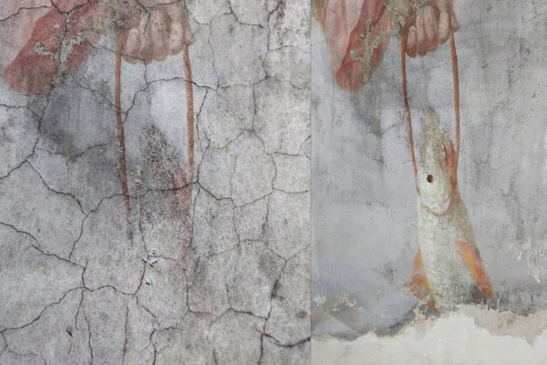 — Да. Живопись местами была заштукатурена поверх авторского слоя — до 50 сантиметров. Когда мы удалили эти ремонтные штукатурки, открылись достаточно большие фрагменты авторской живописи. В том числе и рыба.