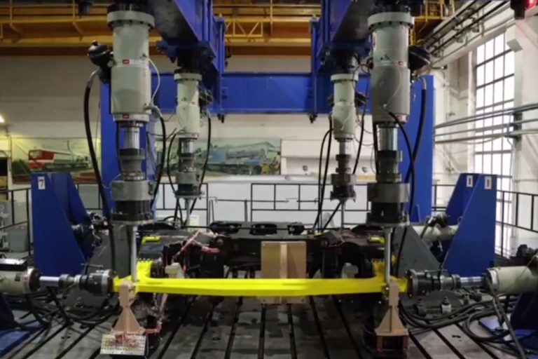 Учёные рассчитали, каким будет влияние скорости, веса кузова и динамическое воздействие верхнего строения пути на этот элемент ходовой части во время движения. На стенде с помощью гидравлических цилиндров производится поэтапное нагружение на различные зоны рамы тележки. Состояние изделия мониторят 150 тензодатчиков. Как при измерении ЭКГ, они в реальном времени показывают реакцию каждого элемента сложной металлоконструкции, сообщили в пресс-службе РЖД.